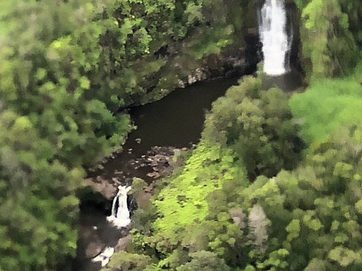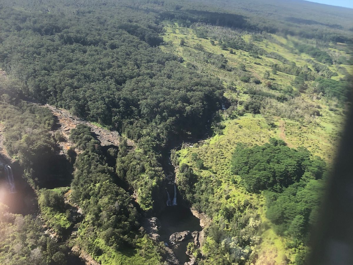 ラバフロー、エンタリングオーシャン、マウナロア麓の滝の順で空から観光しました。