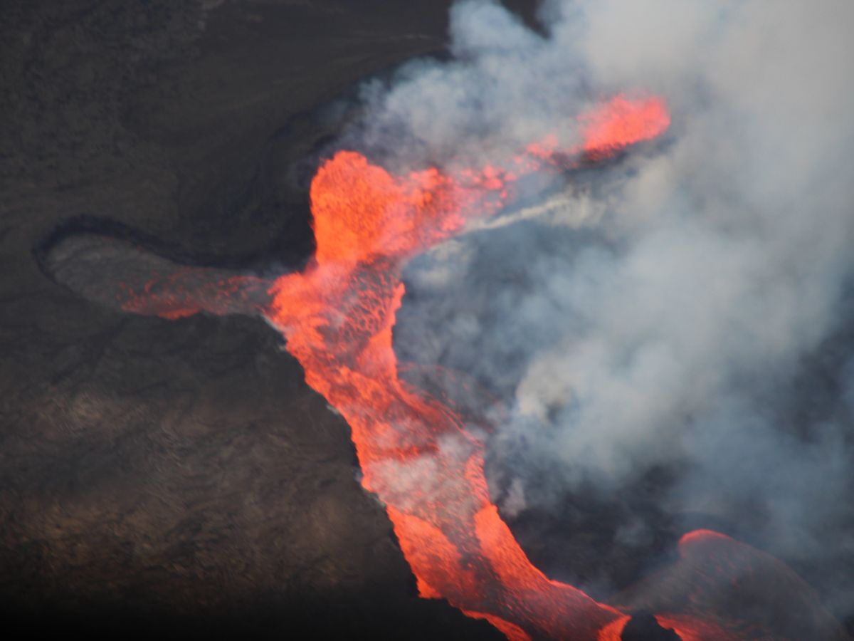 赤々とした溶岩は見れませんでしたが、写真のように