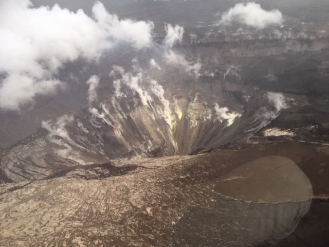 ヘロヘロになりながらでしたが、火口の上空に来た時は、あまりの迫力に圧倒されました。残念ながら溶岩は見えなかったのですが、火口の周りを何度もゆっくりと旋回して、大迫力の画像が撮れました。