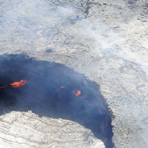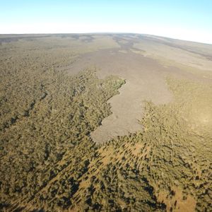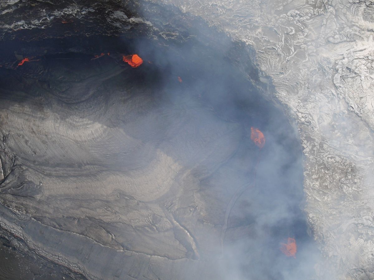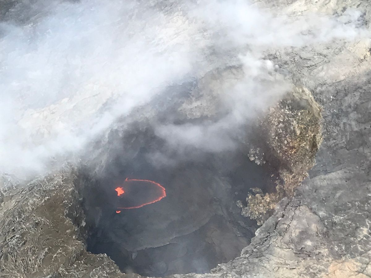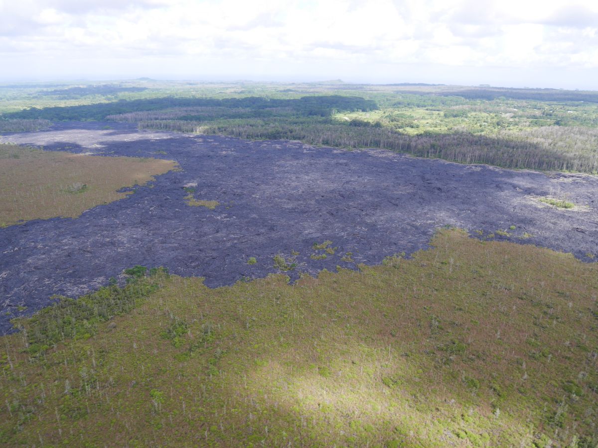キラウエアは地上からも見ましたが、溶岩の流れるところを空から