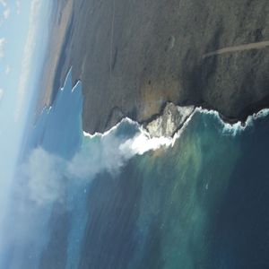 幸運にも我々のヘリコプターのパイロットは日本人でした。シンガポールから来たというドイツ人親子(お父さんと息子)、日本人の新婚さん、我々夫婦の6名がこのヘリコプターの遊覧に飛び立ちました(写真1)。この日は結構強い風が吹いてましたがヘリコプターは安定しておりほとんど大きな揺れはなく快適な遊覧でした。日本人が4名乗っていることからパイロットが適宜日本語で説明してくれるのでとてもわかりやすかったです。キラウエアの二つの火口を遊覧しましたが、ともにオレンジ色の溶岩を見ることが出来て長年の願いが叶いました(写真2,3)。火口から溶岩トンネルを通じて海岸線にまで達し水蒸気があがっていました(写真4)。