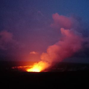 そして、クライマックスはキラウエアの赤い溶岩湖。薄暗くなった空が赤く見え始め、みんなわぁ〜!と声を上げて急ぎ足でキラウエアを見にいきました。