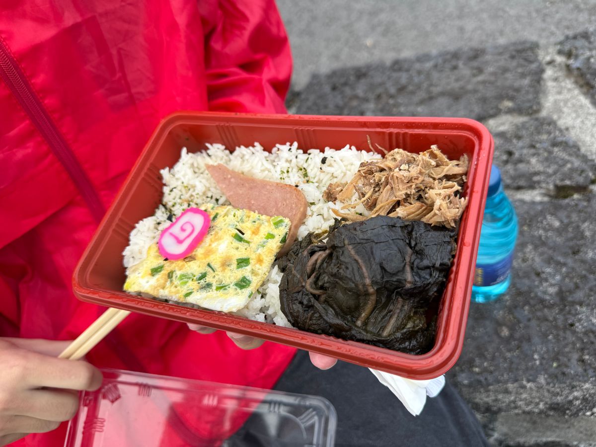 溶岩の上で食べたロコモコがおいしかったです。