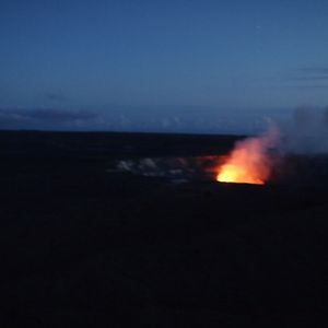 このツアーに参加したのは、キラウエア火山の真っ赤な溶岩が見たかったからです。残念ながら、溶岩は流れていなかったのですが、夕方ツアーだったために、暗闇に映るハレマウマウ火口の赤い炎を見ることが出来ました!良かった~。でもその前に、溶岩が固まった広大な台地でお弁当だったのですが、この溶岩のぼこぼこの方が、リアルで感動的でした。