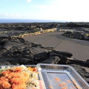 溶岩の上で食べたお弁当最高に美味しかったです。