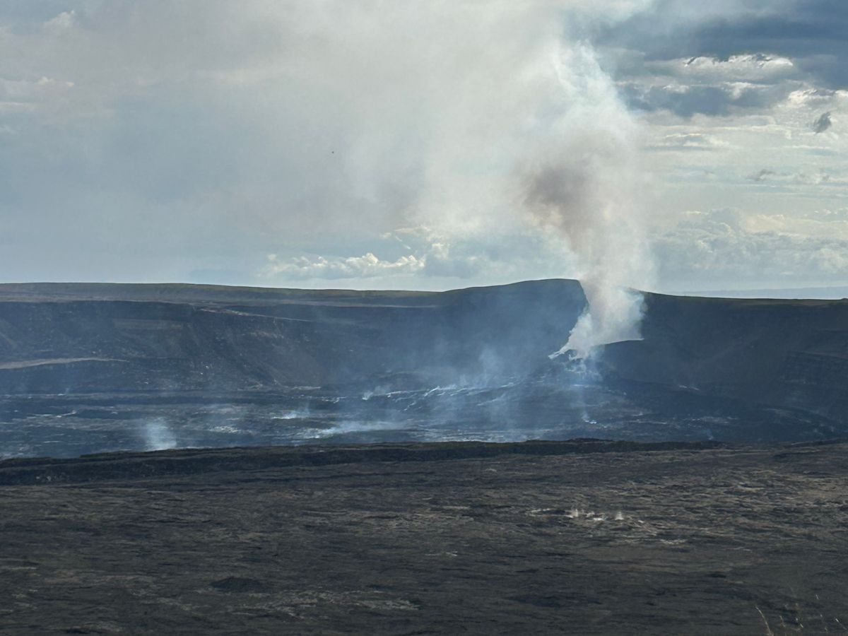 キラウエア火山は、一昨日噴火したところで、まだけむりがあがっていました。