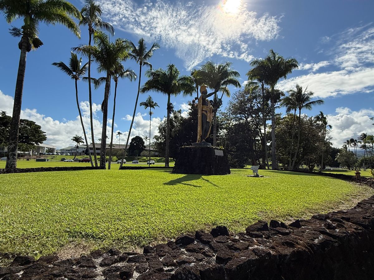 ご参加ありがとうございました!手軽な公共の交通手段がないうえに四国の半分ほどもある大きなハワイ島では、ガイドブックやGoogleマップを見ながらレンタカーで周るのは少しハードルが高めです。多くの皆様に安心してゆっくりとハワイ島の景色を楽しんでほしい、という思いから生まれたこのツアー、「非常に中身の濃い内容」と最高のお褒めの言葉を頂きありがとうございました。ハワイ島愛にあふれるKOJIのご案内もお気に召して頂き、本人も喜んでおります。青空をバックに、ヤシの木に囲まれたカメハメハ大王像のお写真も素敵!また是非遊びにいらしてくださいね。アロハ!