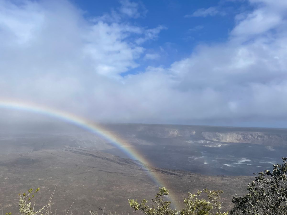 また、volcano付近は雨模様でしたが、経験と機転を利かせた判断で、火口を見るポイントを変えたことで、火口から虹が出現する瞬間を見ることができました