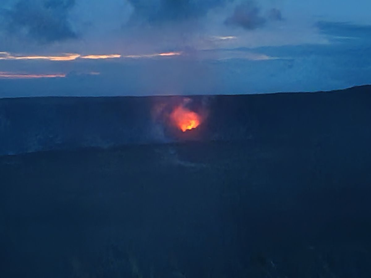 溶岩の上でロコモコを食べた後、休憩で再び寄ったキラウェアボルケーノハウスでまさかの赤いマグマが吹き出しかけているのに遭遇。予定を変更してそのまま星空とのコラボレーションを堪能しました!