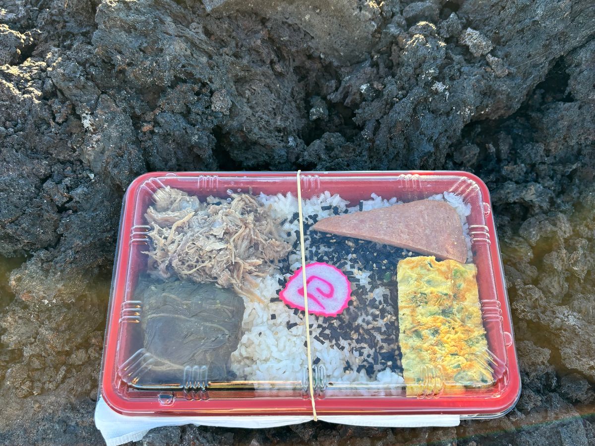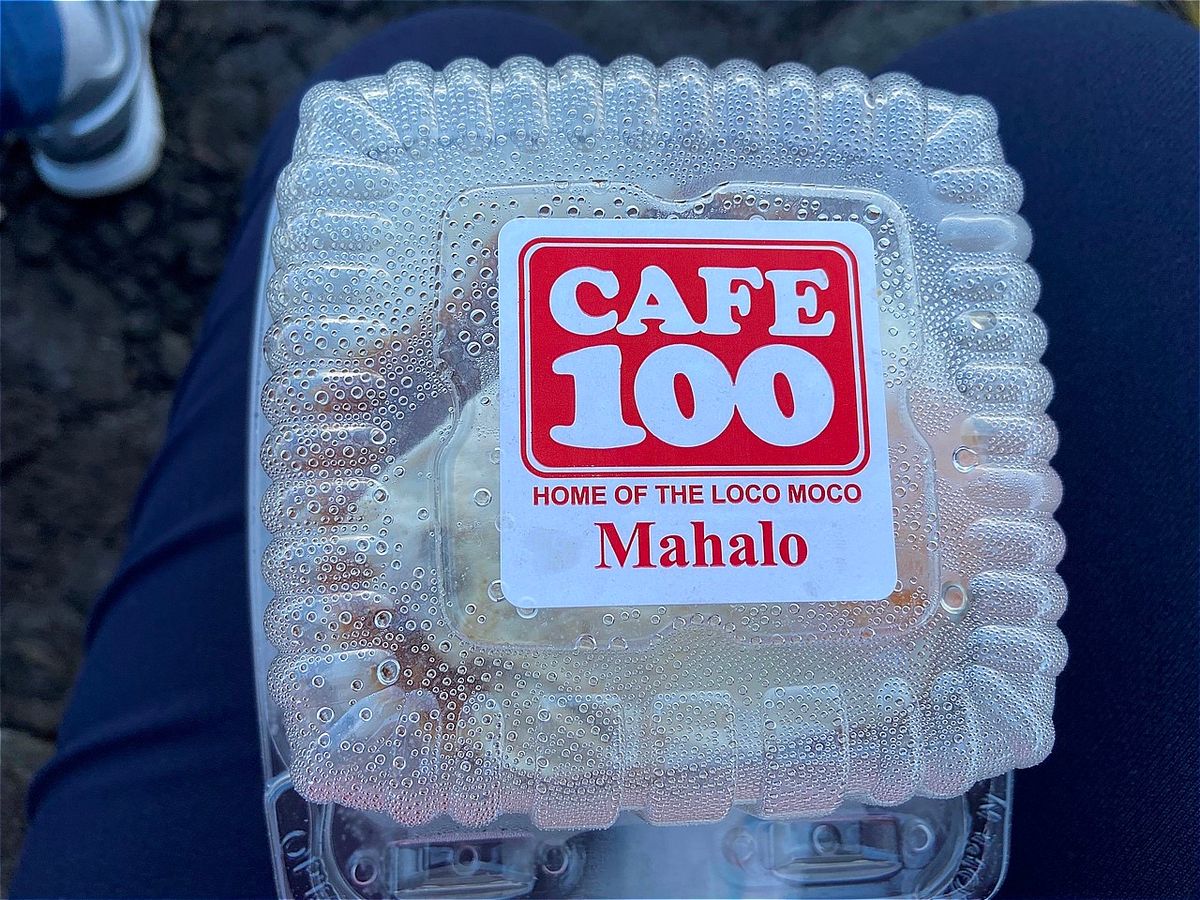 スチーム・ベンツSteam Ventsであっつい蒸気を浴び、ラバフィールドでロコモコ発祥と言われるcafe100のロコモコ弁当の夕食。個人的にはめちゃくちゃ美味しかったです。