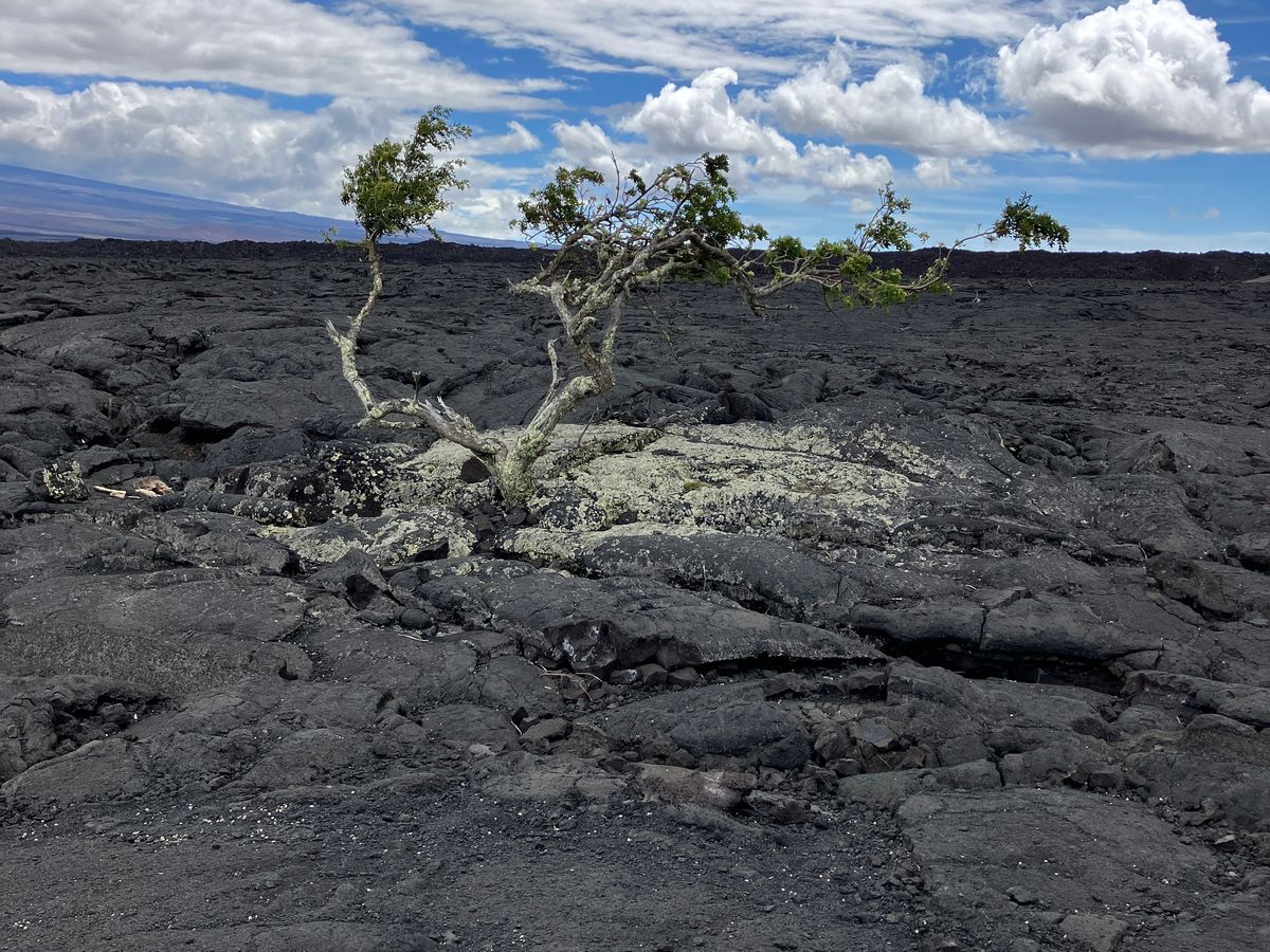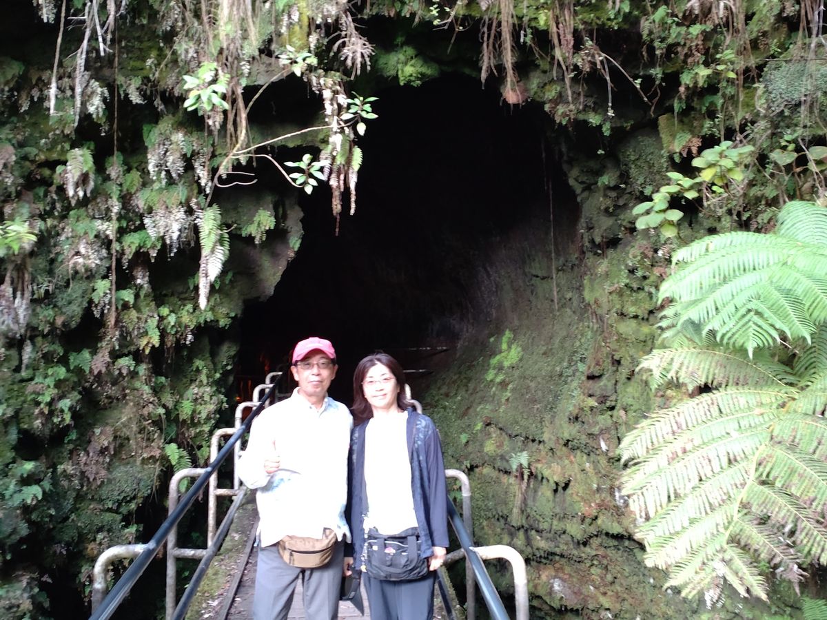 岐阜県くらいの広さのハワイ島に4200m級の山がふたつあること、巨大なキラウエア火山の歴史、溶岩トンネルかできた仕組み、そして私からの質問「ハワイの空港になぜイノウエとかオニズカとか日本名がついているのか」、そのほかいろんなことを、ガイドのみのさんのなめらかな関西弁で理路整然と教えてもらいました。このツアーに参加されるなら「イザベラ・バードのハワイ紀行」(平凡社)を事前に読まれることをおすすめします。