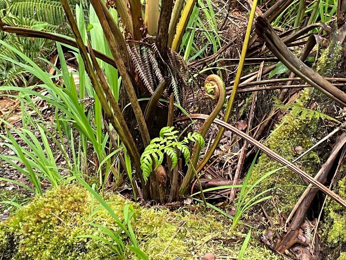 ハワイには野生の動物が多くいるとのことです。移動中の車の中からも何種類か見ましたが、キラウエア火山近くの溶岩洞窟に行く途中で野生のキジを見ました。また、同じ場所で驚いたのが、巨大なシダ(ハープウと言うらしい)を見たことです。ゼンマイ?の巻いたところが手のひらぐらいある感じでした(食べることもできるようですが)。