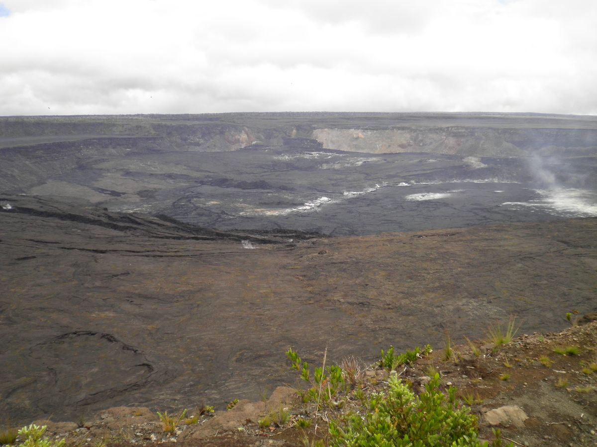 楽しみにしていたキラウエア火山見学、小雨模様でしたが、大きな火口を見ることができました。