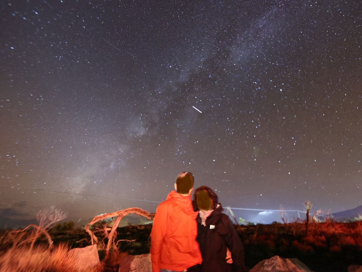 星空観察も月明かりの影響が少ないうちに堪能でき、火山と星空をバックの写真撮影という二度とないかもしれない思い出になりました。