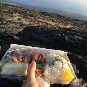 途中、雨が降っていましたが、溶岩台地の夕食時には晴れたので外でお弁当を食べられました。