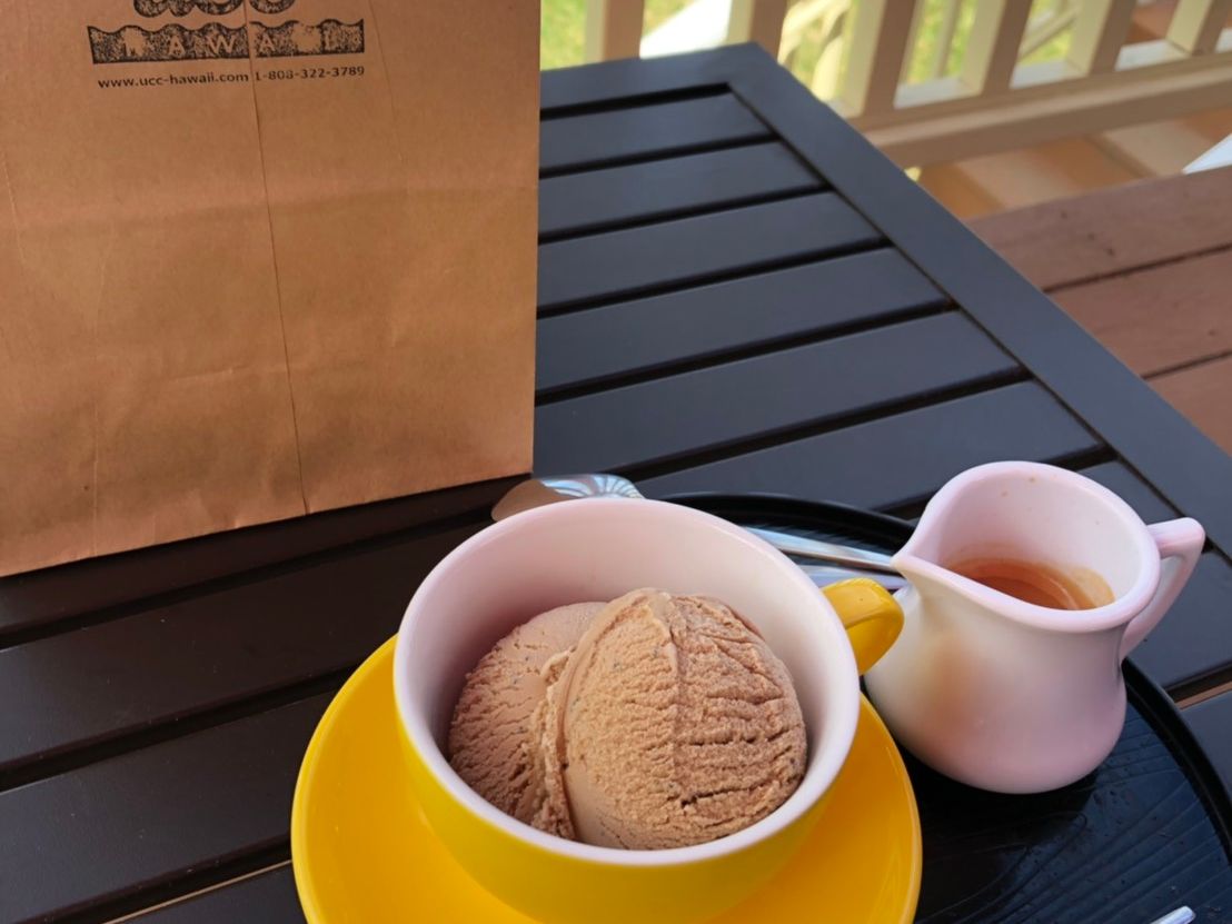UCCコーヒー農園でのコーヒーアイスに濃厚コーヒーをかける アフォガードは超美味!!