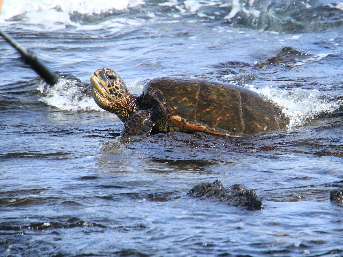 プナルウ黒砂海岸で亀を探していたら、和田さんが真っ先に見つけて望遠鏡で見せてくれたり、スマホを望遠鏡に繋いで(?)ビデオ撮影していただきました。自分でも写真を撮ったのですが、ちょっと遠かったので。