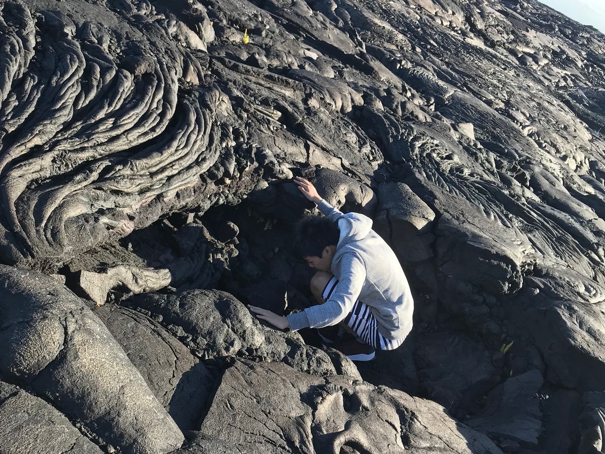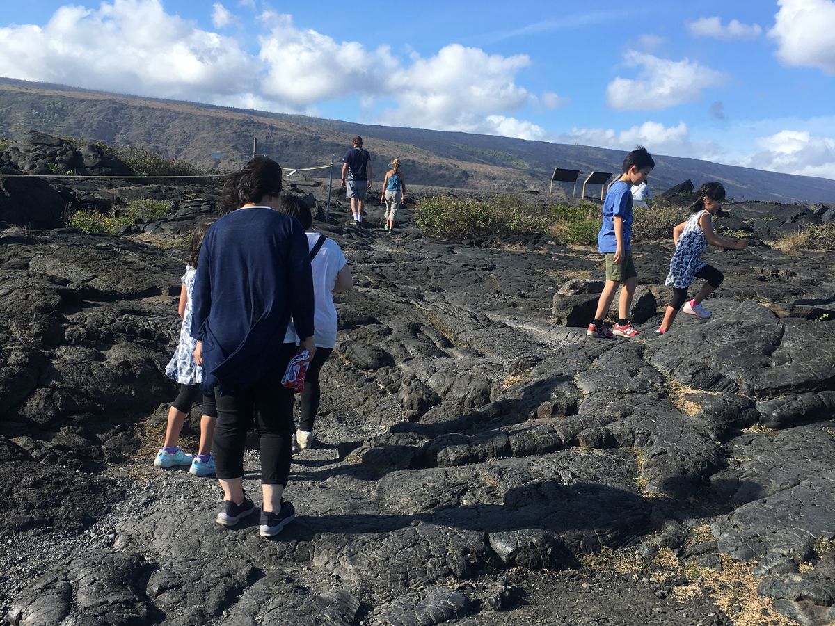 ワイコロアから北部を経由してヒロの方面にドライブ。周りの景色が次々と変わっていく中、どうして同じ島内で景色が全く異なるのかなどハワイの気候や成り立ちの解説、途中の町々では特に日系の移民の方の古い建物を紹介していただき、ハワイ島の日系人の歴史や初期の移民の苦労などの説明もしていただきました。途中ではワイピオ渓谷やアカカの滝などの名所にも立ち寄り、溶岩洞窟や溶岩の噴出で空が赤くなる様子を観察して、ホテルに戻るという内容の濃い1日を過ごせました。子供たちは特に溶岩洞窟内の探検が楽しかったそうで、本当の”真っ暗”を体験させていただいたのも良い経験だったと思います。