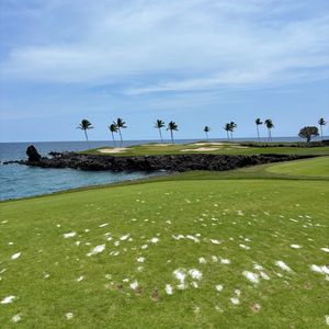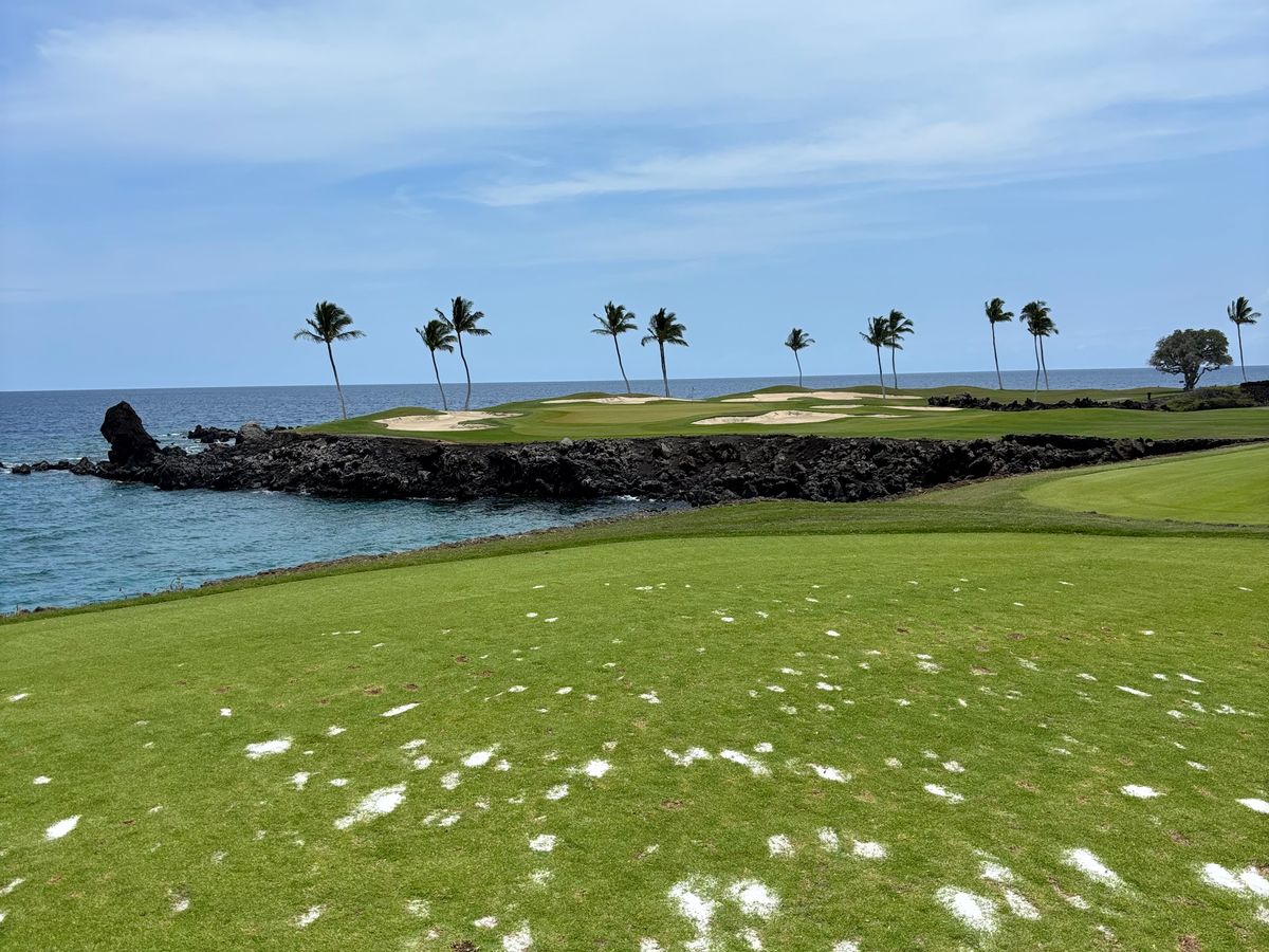海やヤシの木、溶岩にに囲まれて最高のゴルフコースです。