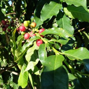 コーヒー農園の見学も、斜面の一番上に立つ販売所兼焙煎体験場から数メートル下って、何本かの木を見せてもらうだけです。