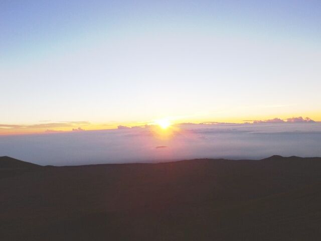 8月29日。マウナケア山頂のサンセットも星空も予想をはるかに超える素晴らしさに感激でしたが、サンセット直後の地球の影がマウナケア山頂の上に浮かび上がった時は、その神秘さに鳥肌が立つ思いでした。