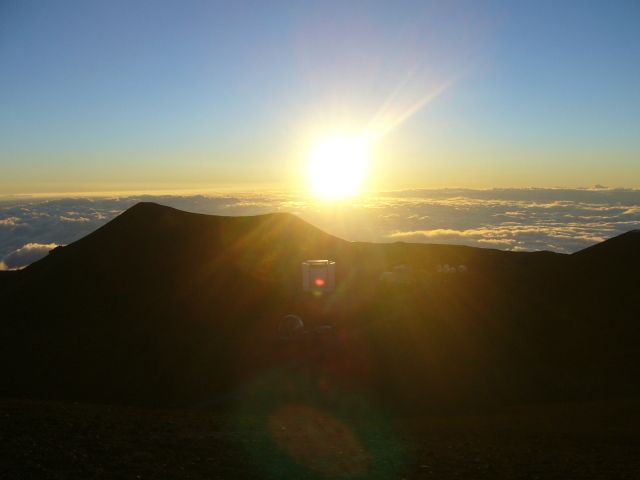 雲海に沈む夕陽。雲海の上には、マウイ島のハレアカラ、ハワイ島のフアラライ山の頂が浮かび、目前には各国の天文台が並び立つ。日本では見ることのできない絶景に息を呑みました。こんな高さまで車でいけるとは、マウナケア山の緩やかな稜線に改めて感心しました。日没後は、3600メートルの高さから満天の星を見ました。ちょうど新月でまさに星が落ちてきそうなほどでした。夏の星座を満喫しました。気温は2度、体感温度はたぶん氷点下ということで、ハワイのイメージ一新でした。ツアーガイドのシンヤさんの巧みな話術で、車中も飽きることなく、眠って高山病にかかることなく、思い出に残るツアーとなりました。