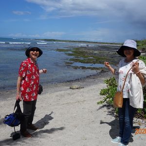 コロナ・ウイルスの影響で海外渡航を心配視される中、青い海・青い空に白い雲、光り輝く太陽の陽射しを浴びてコナ国際空港に降り立ちました。この体験談によく登場されるFガイドさんが、ネームプレートを持って出迎えてくれました。私達も初めてのハワイ島で、チェックインまでの時間を有効に過ごそうと思い参加しました。コーヒー農園では、清々しい天気のもと、植物の説明や、とりわけコーヒーについて詳しい説明を受け、オレンジを採って食べたり、コーヒーの試飲をさせて頂き、その美味しさに感動。海が一望できる見晴らしでまったりゆったりして、飛行機の疲れやコロナのことも忘れていました。ポップコーンとナッツのサービスも有難うございました。ホノコハウビーチ散策では、亀にも出会うことが出来ました。そして、コナタウン散策では、孫に可愛らしいアロハとムームーをお土産に購入し、小腹が空いた時に「タコス」を美味しく頂きました。お土産を安く購入するならと、Walmartにも寄って頂き、滞在中にホテルからトロリーに乗って出掛け、情報に感謝します。「還暦祝い」の私達夫婦一組だけのツアーになり、ハワイ島初日から親切・丁寧な対応でした。