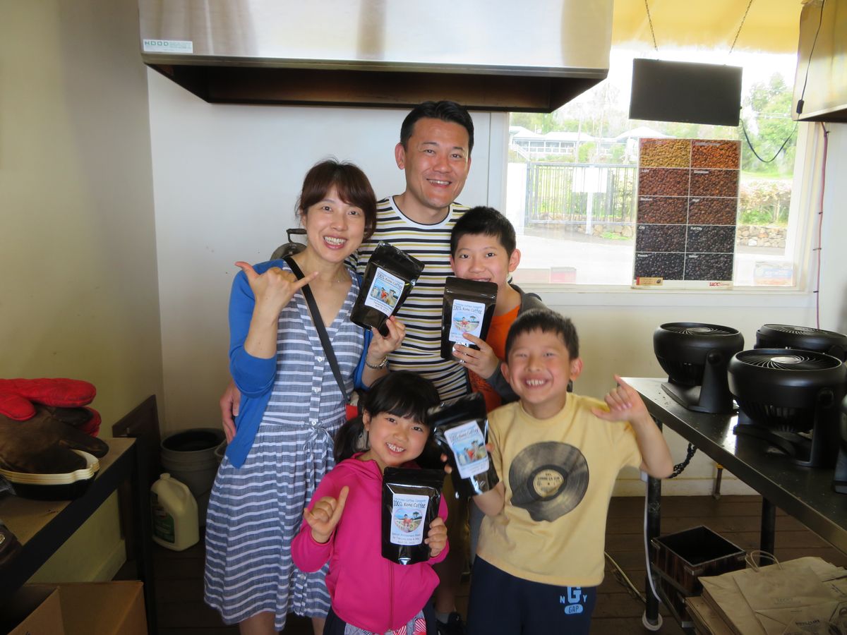 妻、長男と私はコナコーヒーがお気に入りだったので、実際に焙煎体験や説明を通してそのおいしさの秘密が分かったような気がします。また、子供たちは小6、小3、幼稚園年長だったので、焙煎そのものは体験できませんでしたが、色々お気遣いいただき、皆でしっかり楽しめました。