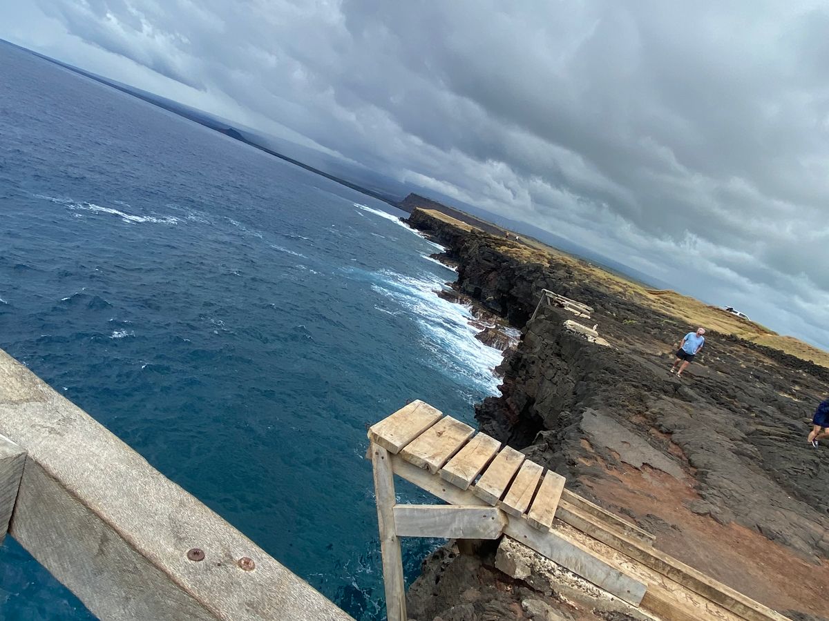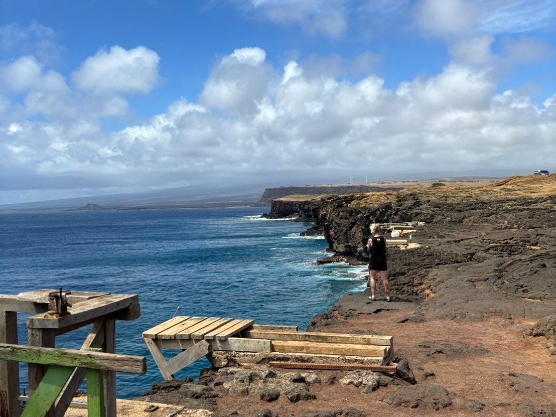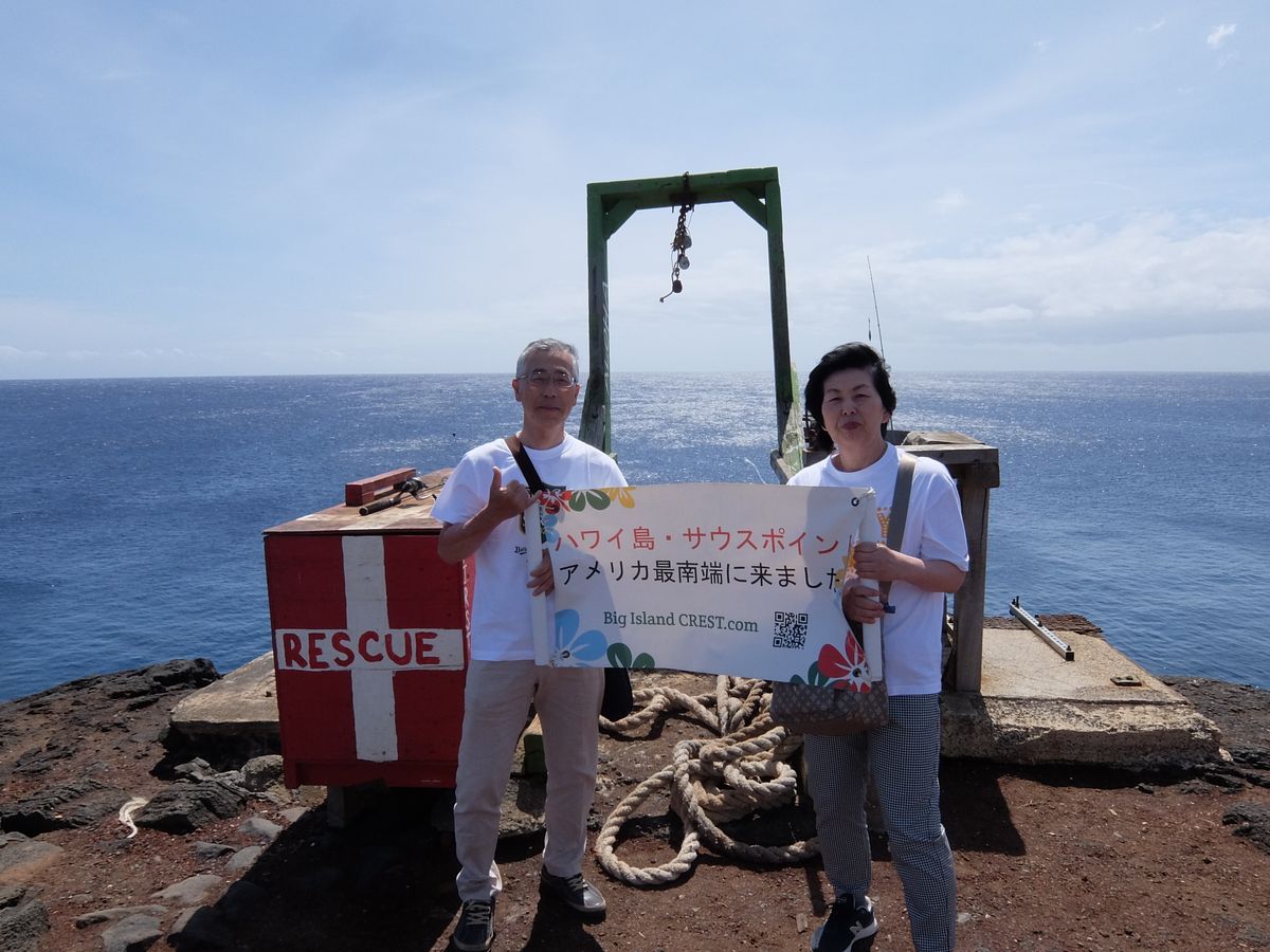 その後、アメリカ最南端サウスポイントでは、海を見下ろす絶壁の前でガイドさんが用意された「アメリカ最南端に来ました。」の幕を手に太平洋をバックにとって頂いた写真は、とても良い記念になりました(^^♪