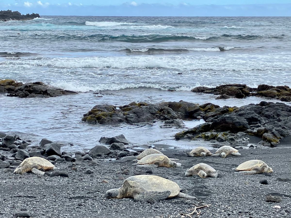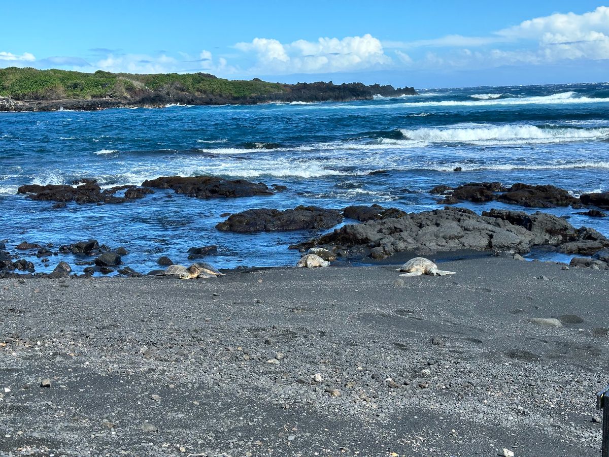 プナルウ黒砂海岸では、七匹の海亀が砂浜で日向ぼっこする姿を見ることが出来て、とてもラッキーでした♪