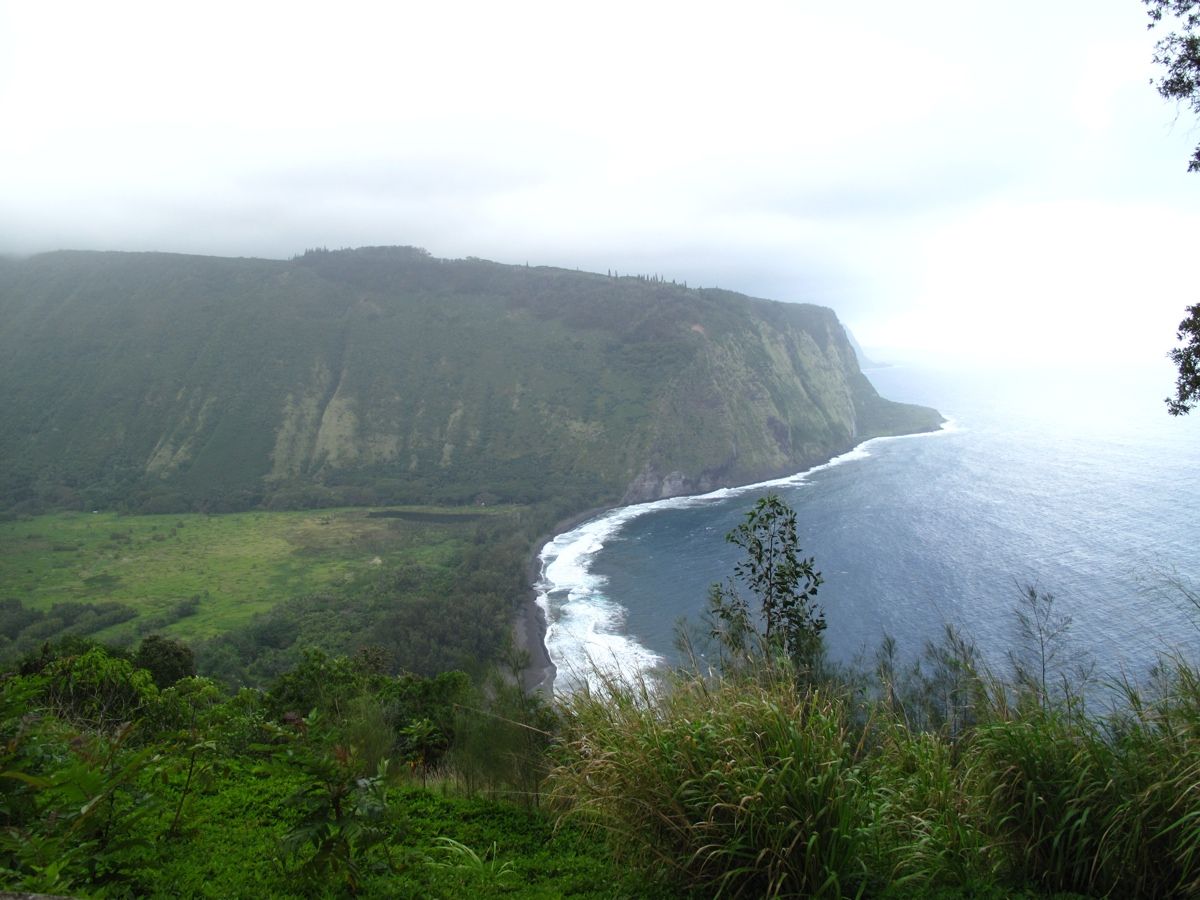 ハワイ島はホノルルと違いバスの便が悪く、タクシーも少ないので、チャーターで気ままな観光を選びました。ホテルの車寄せから乗り込んで、本場コナ・コヒーの上島コヒー農園へ行ってもらいました。コヒー園の歴史解説や、コヒー豆の豆知識?クイズを受けた後、何種類コヒーを試飲し、気に入った豆を土産も含め数袋購入。コヒー園特製のアイスクリームをごちそうになった後、90分程ワイピオ渓谷までのドライブを楽しみました。ワイピオ渓谷の終点は断崖絶壁で、その中程からは水量豊富な滝があり、勢いよく海に注いでいる様子がよく見えました。