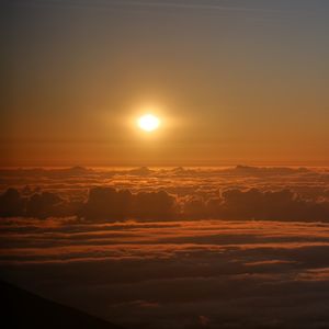 身体を慣らしてから、山頂でのサンセット見学。見渡す限りの雲海が白からオレンジ色に染まって行き、太陽は沈んでいきました。