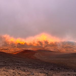 麓のワイコロアは良い天気なのに、迎えのバスに乗るなり、ガイドさんから、午前1:30現在山頂への登攀はストップとのこと。標高2800mのオニヅカビジターセンターで星空観察後待機。待つこと30分でレンジャーから、登攀許可が出て、ワイナケアのてっぺんへ。月世界のような風景の中での日の出は最高でした。とても寒かったけど感激しました。