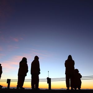 徐々に夜明けを迎える空の色。神々しい日の出は