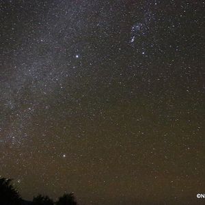 ガイドさんは星座のことも詳しく、分かりやすく説明してくれました。天の川やオリオン座をバックに記念撮影をして星空観察は終了。