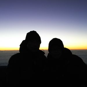 山頂へ向かう途中の空の色は刻一刻と変化し、朝日が昇る前もとても綺麗です。むしろ昇る前の方が綺麗かも。頂上に着いたら日の出前、日の出後とたくさん写真を撮ってもらえました。私達が登った日は、見ると幸せになれるというグリーンフラッシュ現象が!なんと私はカメラを見てて見逃すという大失態を犯しましたが、グリーンフラッシュ浴びたって事で…w