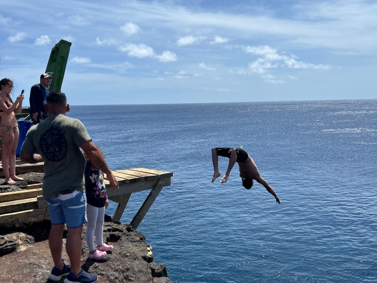 ご参加ありがとうございました!アメリカ最南端でジャンプして海へ飛び込むローカルボーイのお写真、本当に素晴らしいタイミング!奇跡の1枚をご共有頂き、どうもありがとうございました。快晴のアメリカ最南端・サウスポイントでは、元気なローカルが時々、こうして海へダイブして遊んでいます。かなりの高低差がありますが、真っ青に澄んだ空と、どこまでも遮るものなく続く深い青い海を見ると、飛び込みたく気持ちもわかりますよね。ウミガメにもたくさん出会えて、よかったですね!ハワイアンスタイルのお夕食も美味しく召し上がって頂けましたでしょうか。また是非遊びにいらしてくださいね。アロハ!