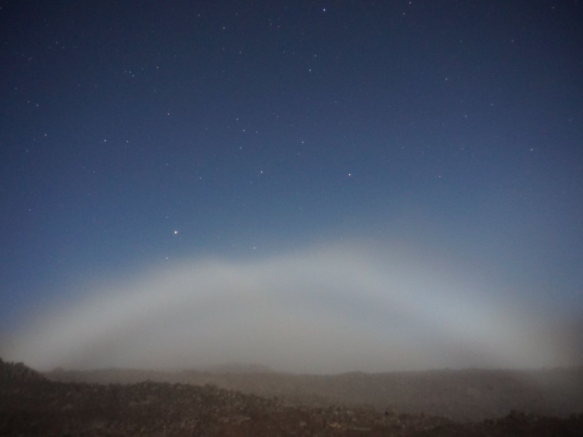 星空観察も終了し、帰り道で地元住民の方が「幻の虹」と呼んでいるムーンボー(月虹)を見ました。当初私たちは全く気が付かなったのですが、KAIさんが「これはすごい!」と言ってバンを路肩に寄せて下さり、教えてくださいました。地元の方でもなかなか見れないそうでとてもラッキーでした。