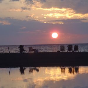 サンセットの醍醐味を知りました。太陽が沈んだ後に、息をのむような美しさの茜色や水色をはじめ、色とりどりに変わっていく空や雲や水面に、見とれてしまいました。
