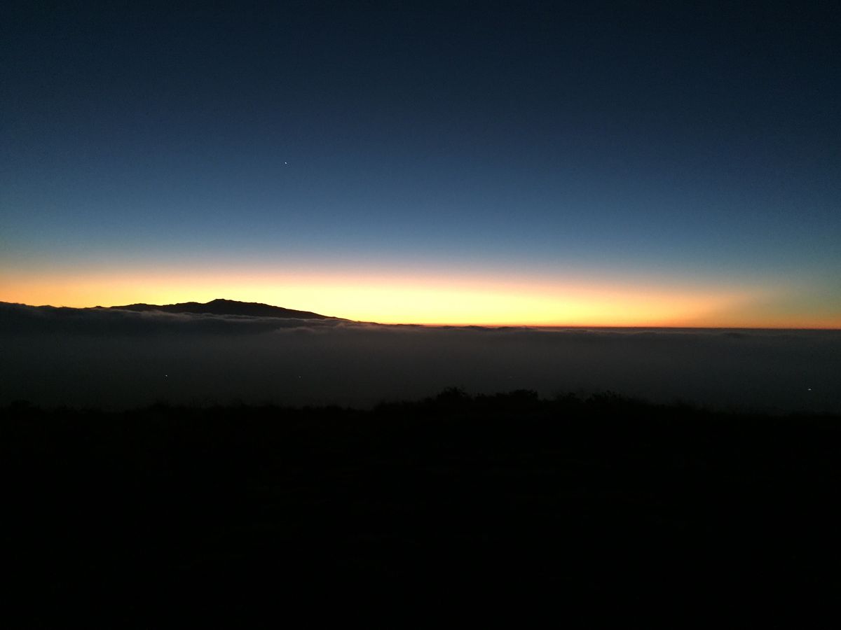完全な暗闇の中、車のヘッドライトのみで進み、マウナロア中腹についてみると、すでに雲ははるか下。頭上に広がる満点の星に感動の波が押し寄せてきました。