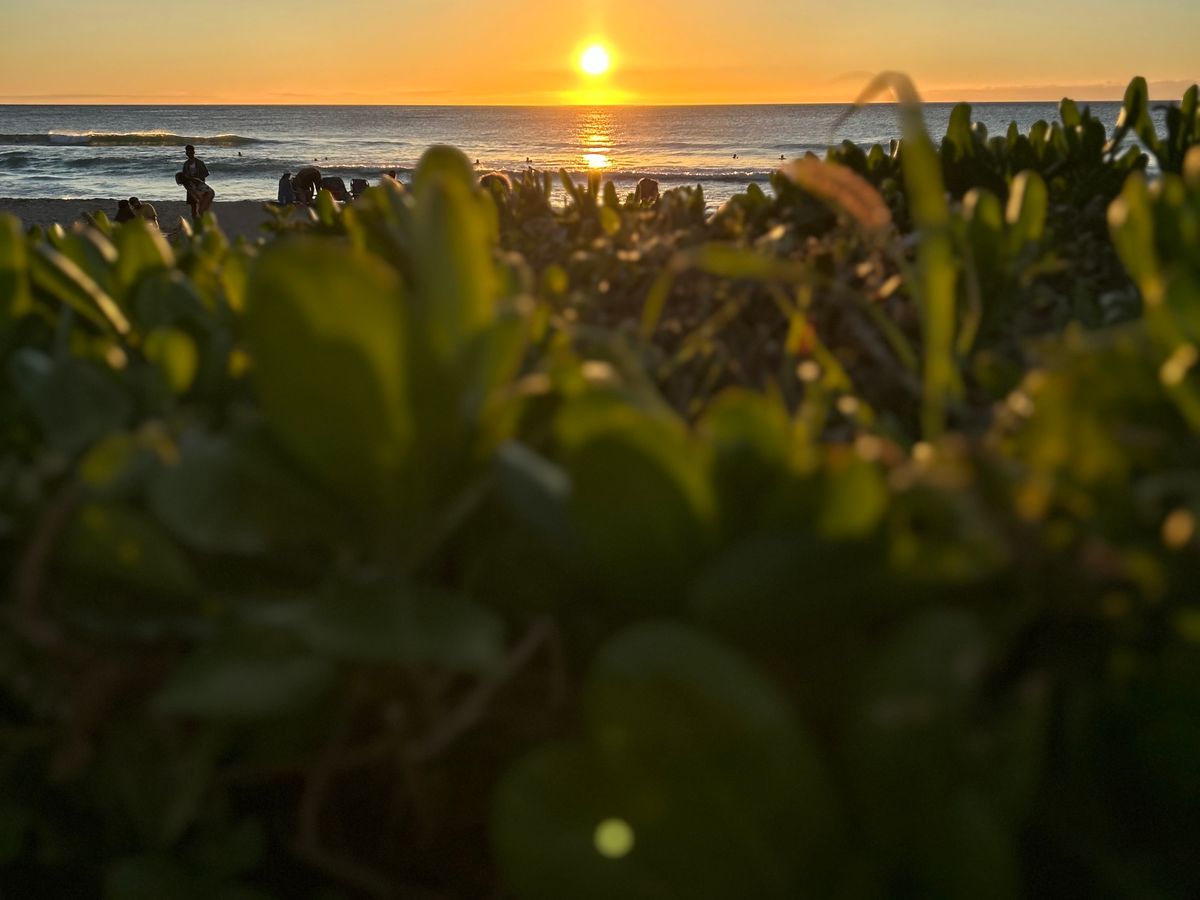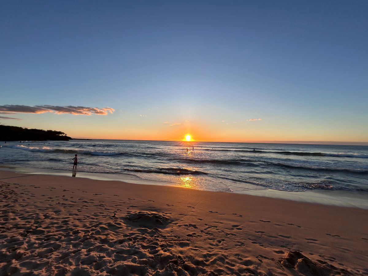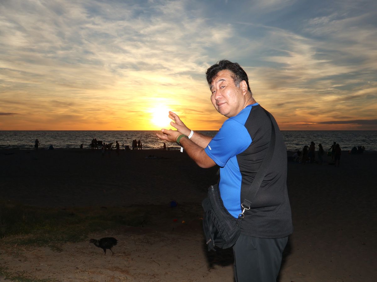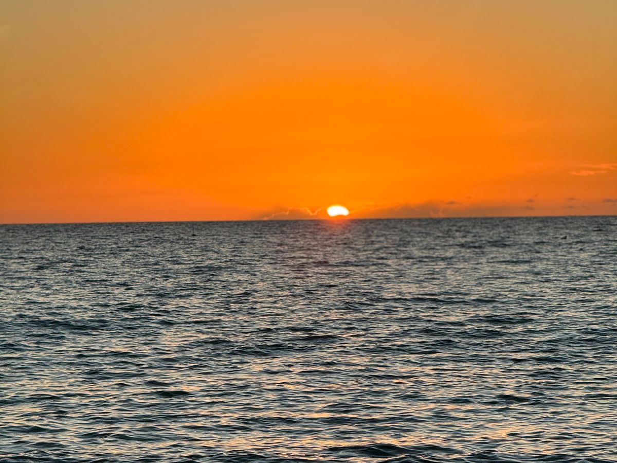 まずマリオットホテルのビーチからのサンセット、雲が無く水平線に沈んでいくのがきれいに見えました。