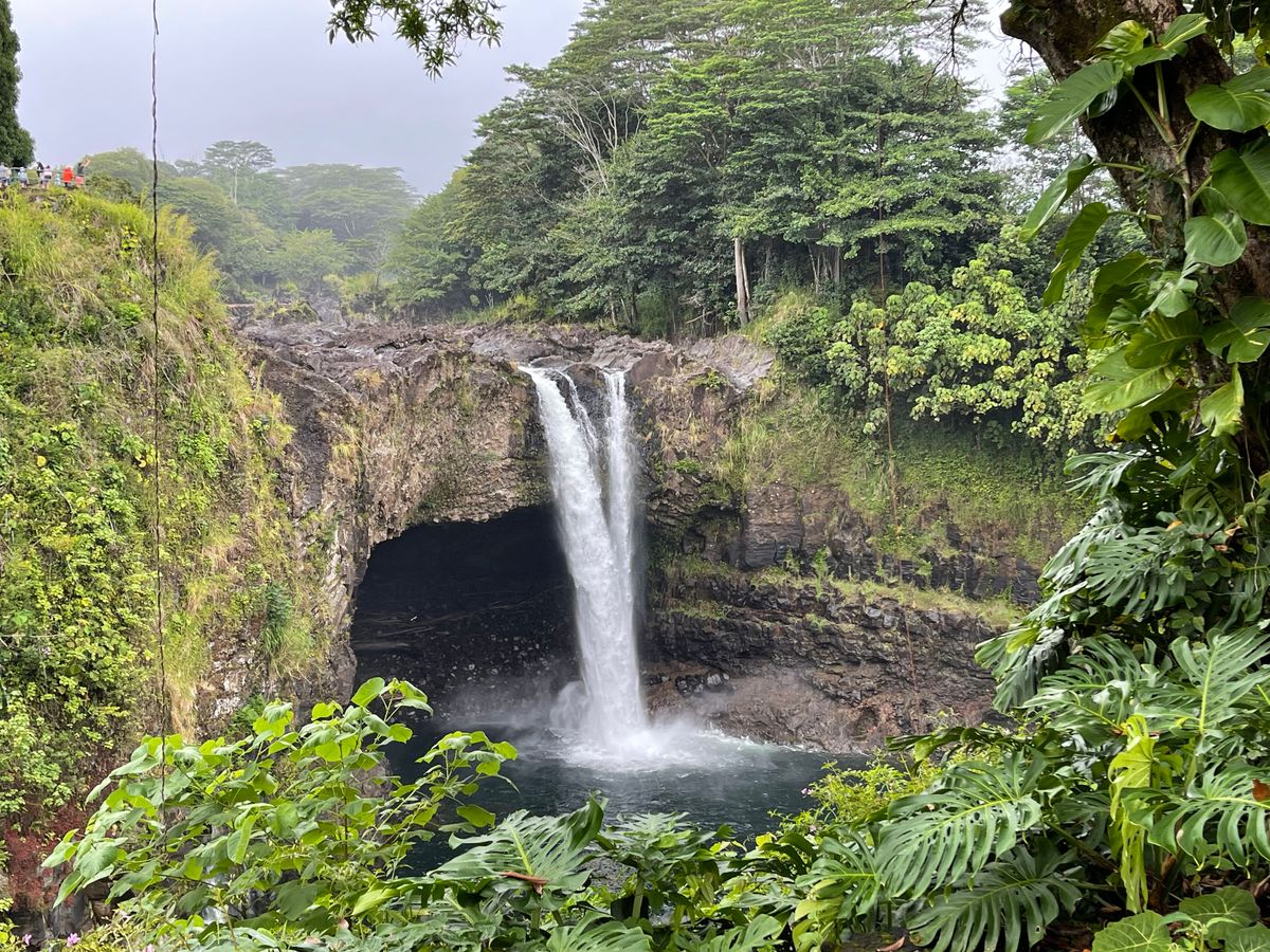 レインボー滝、雄大な景色のキラウェア火山、溶岩大地の上でのロコモコ弁当。