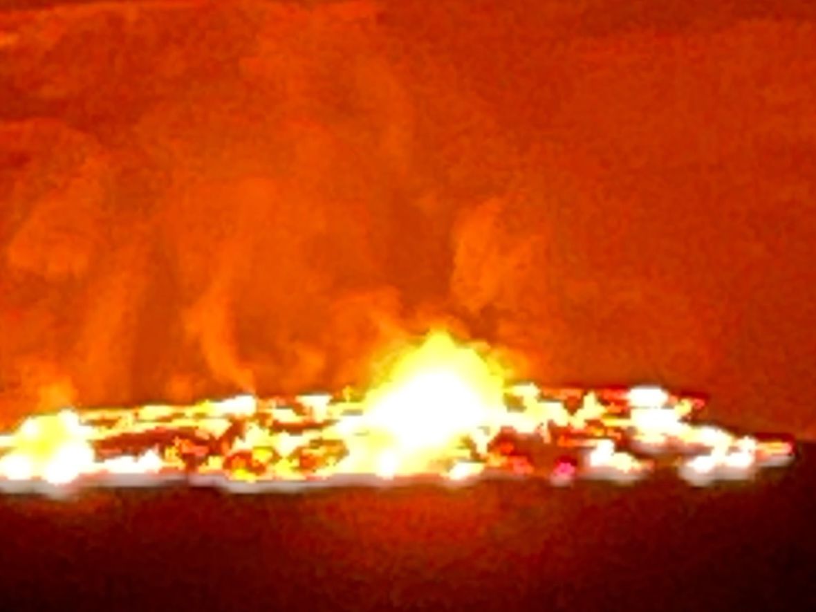 黒砂海岸散策して、Big Island Candy でお土産購入しキラウエア火口へ、1/5 に噴火が始まったと聞いてましたが火口の中では赤いマグマがボコボコ噴出 余りの迫力に暗くなってから戻って来たいと行程変更をお願いして、戻って来たらなんとビックリ⁉️火口がオレンジ色のメロンパン状態⁉️