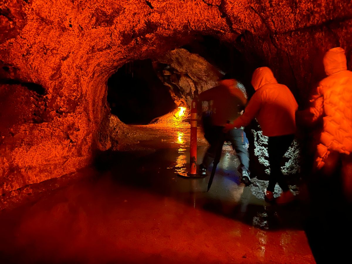 ぐつぐつと湧き上がる赤く光るマグマを観察したり、