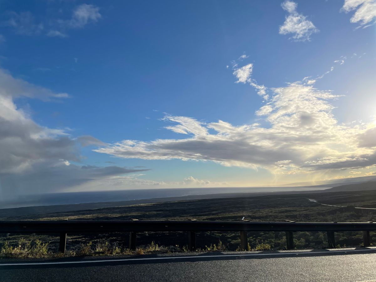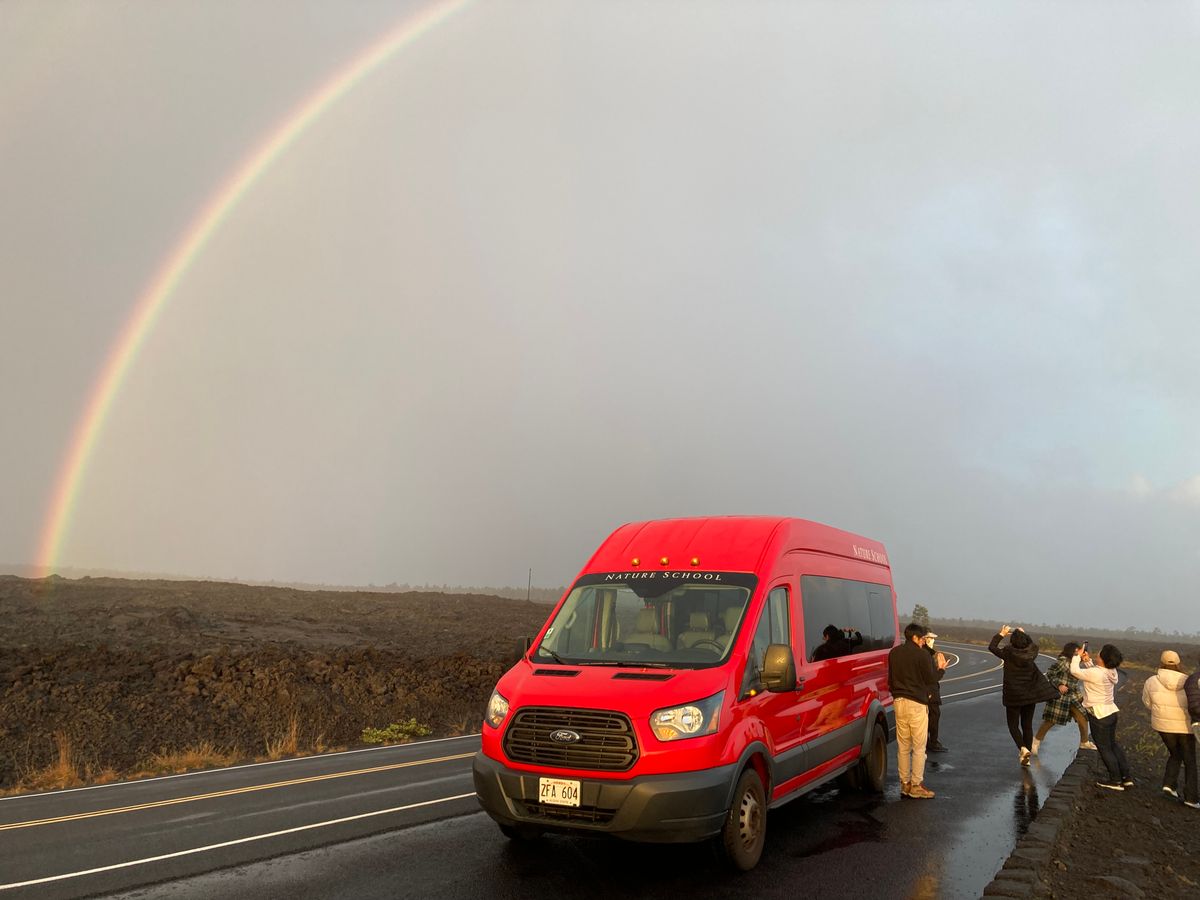 連日の大雨でボルケーノは見ることが叶いませんでしたが、その代わりに溶岩大地の絶景のポイントまで連れて行っていただき、忘れられない思い出となりました。一瞬の晴れ間に虹がかかったり、ハワイ島の自然、目まぐるしい天気の変化を感じられました。山の上や火山公園はなかなか寒いのでしっかり防寒できる格好を準備しておいてよかったです。暖かいお茶を持参すると良いと思います。