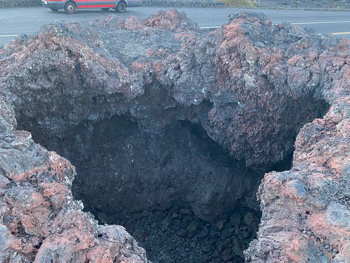 当日はマウナロア、キラウエア共に噴火が止まっていてどう楽しませてくれるのかと思っていたら、アオキさんの名付けた溶岩かまくらでの写真撮影や、やまびこの返ってくる火口など飽きさせない工夫がありました。