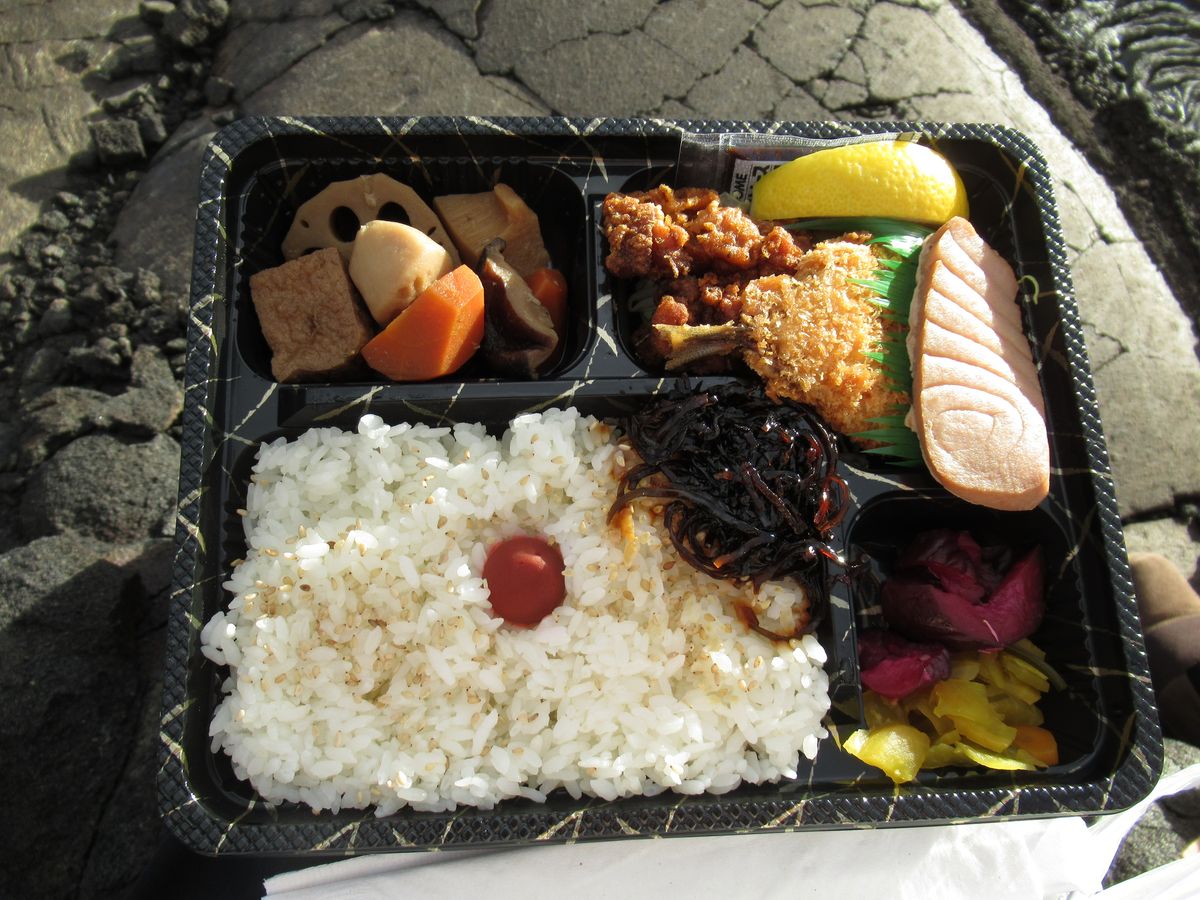 溶岩大地に腰かけて食べるお弁当は、特別な体験でした。
