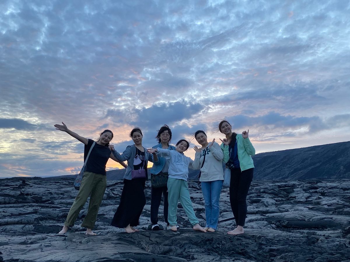 ハワイ島に到着してすぐ、夜行動できる日がこの日しかない中、思う存分に観光できました。大自然へ向かう前にKTAでお弁当を買い、キラウェア火山へ。火山でガイドのFさんに素晴らしい写真を撮っていただき、その後火山が海へ流れて行った場所、溶岩トンネルなど私たちでは知り得ない所へ案内していただきました。その後マウナケアへ星空観察へ行ったのですが、あいにく雨が降って来て一時星空が見えなかったのですが、お天気アプリや場所の移動など精一杯尽くして頂き、最高の星空を見ることができました。写真の撮り方も最高で一生の思い出ができました。ガイドのFさんのおかげで200%以上の旅ができました。ありがとうございました。
