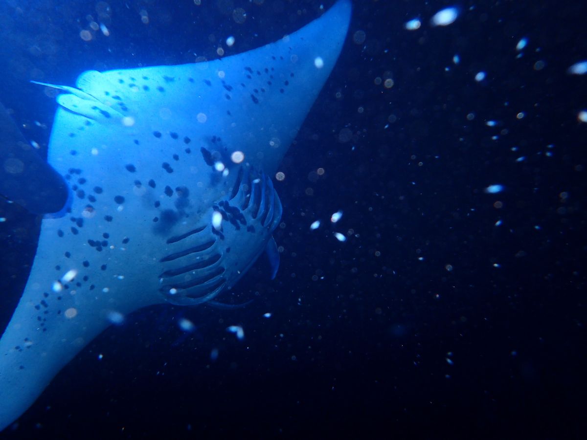 夜の海で舞うように泳ぐマンタはすごく幻想的。しかも自分のすぐ目の前で舞ってくれて感動でした!