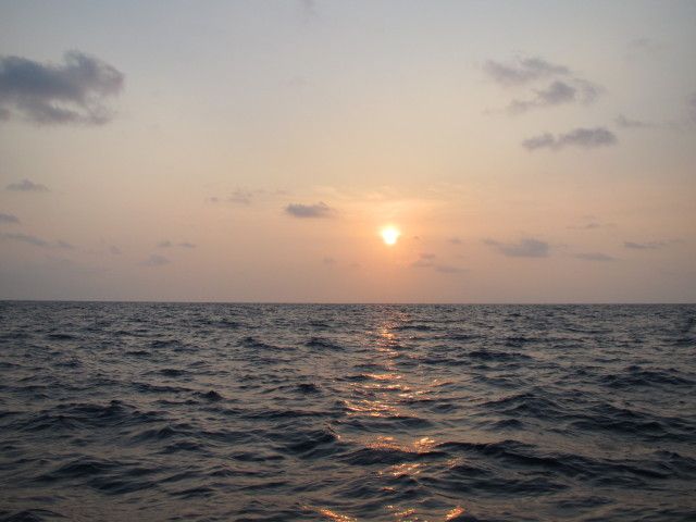 ハーバーに着き船に乗り込むと、夕陽を眺めながらのクルーズ、暗くなったらいよいよマンタを見に海へ入ります。